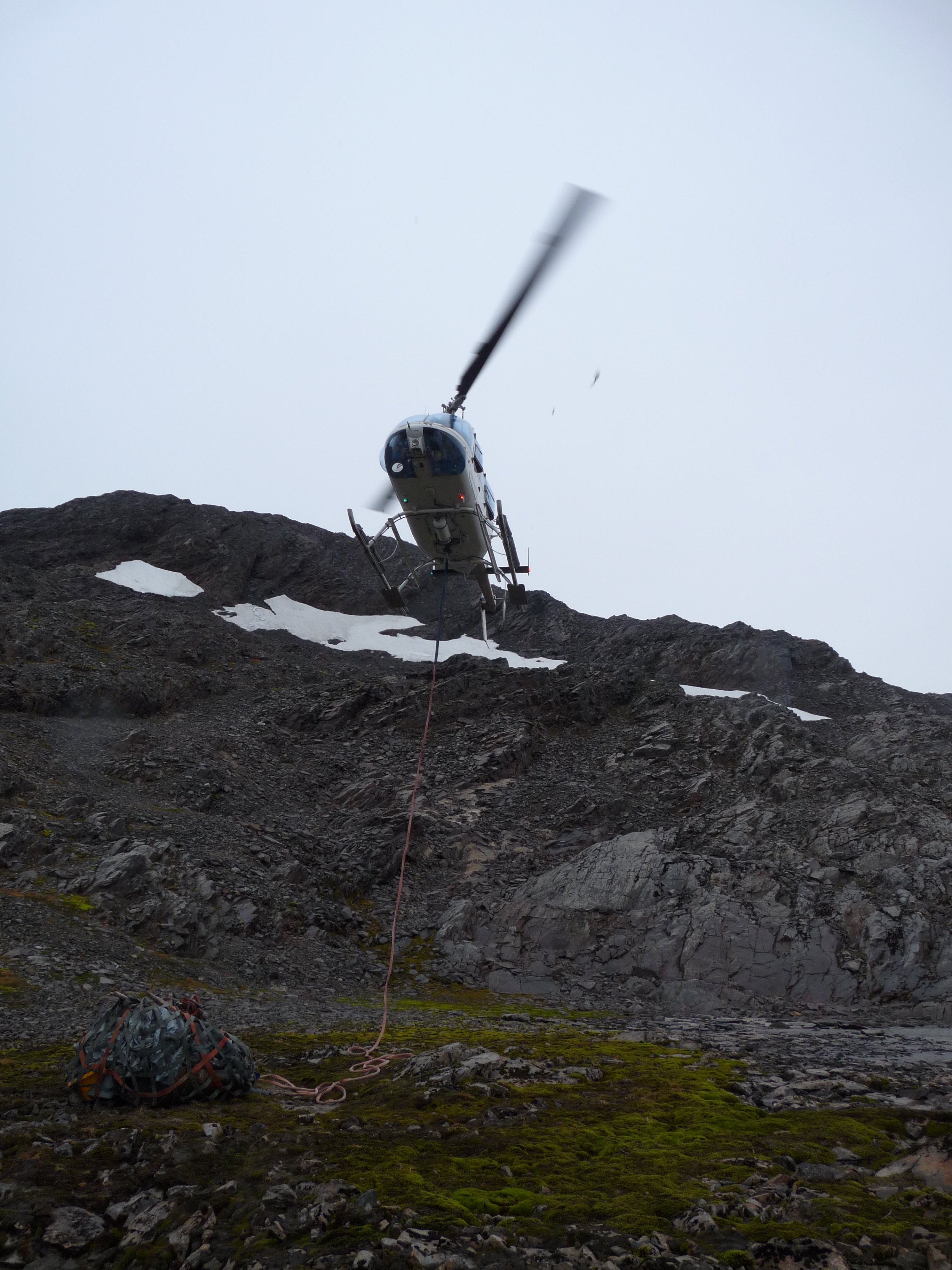 On October 15th, in association with Kodiak Island Trails Network, KISAR members returned to clean up the site. Tom Walters with Maritime Helicopters sling-loaded the trash that the KISAR team collected.