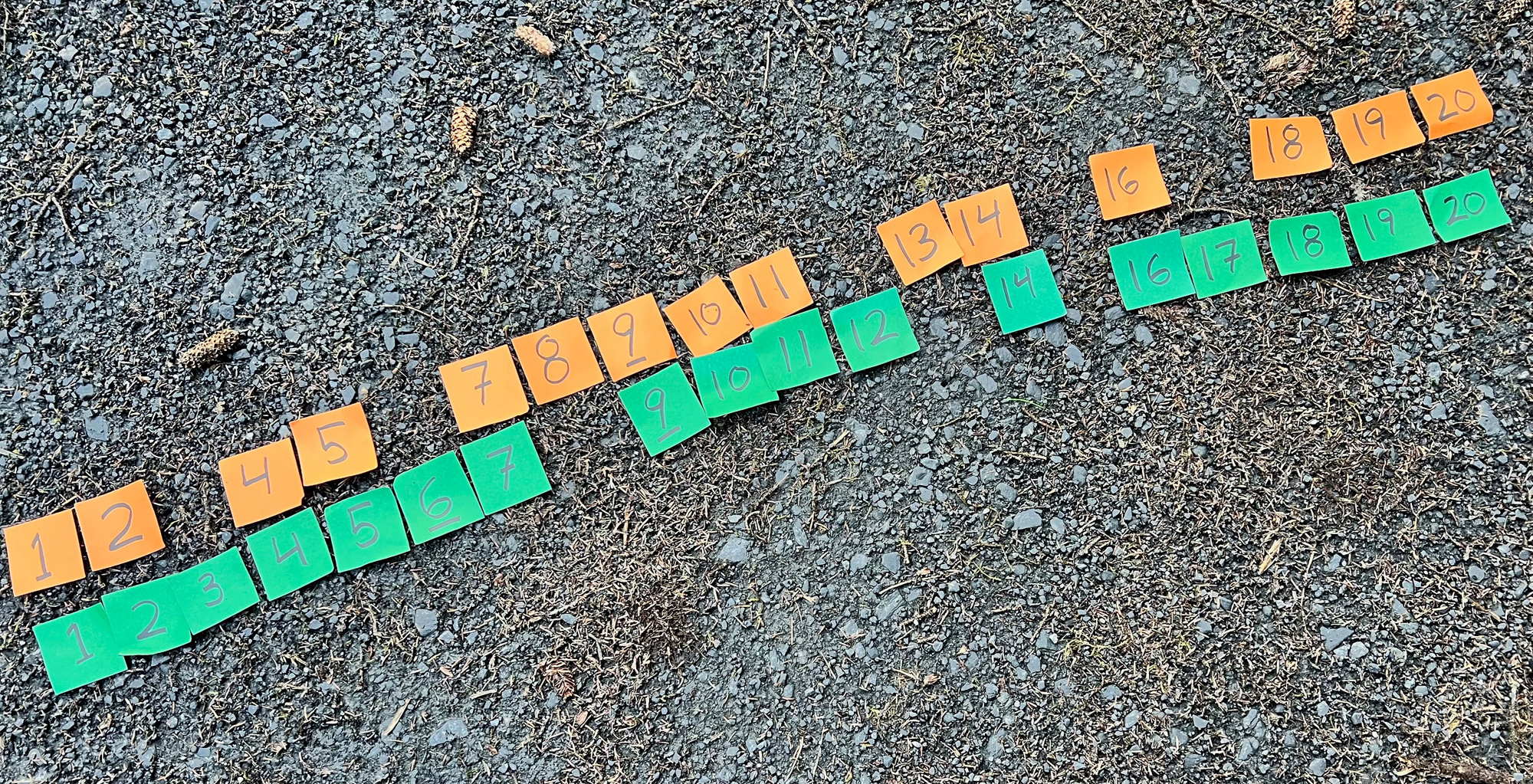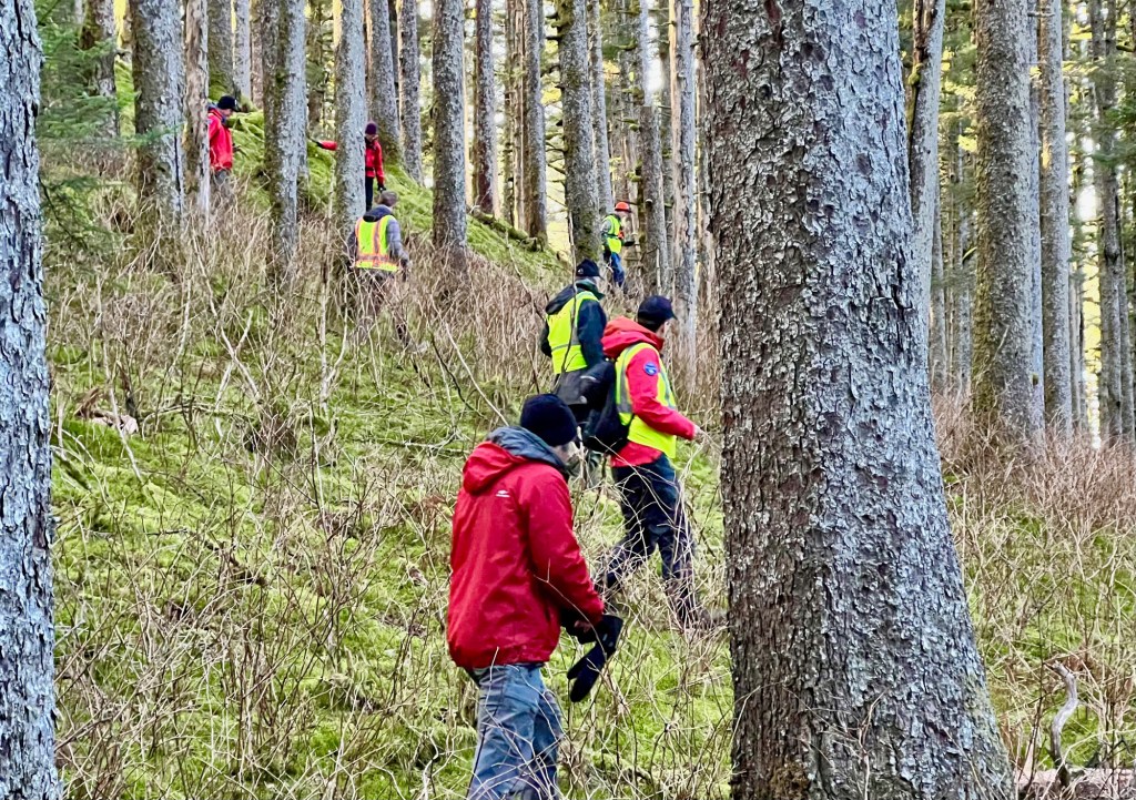 For KISAR’s January general membership training Philip set a course of clues in Fort Abercrombie State Park between Lake Gertrude and the wildflower meadow. The search area was bounded on the east side by Abercrombie Drive and by trails on the other 3 sides. 40 ‘clues’ were deposited in the search area in the form of squares of orange and green paper with numbers written on them. After a briefing, 9 KISAR members formed a critical separation line-abreast team and methodically swept the search area in 4 passes, recovering 32 of the 40 clues (80%), which was slightly higher than the goal of 65%. The purpose of the training was to become familiar with factors influencing the probability of detection of clues and to practice doing a critical separation sweep search with group situational awareness and good communication.