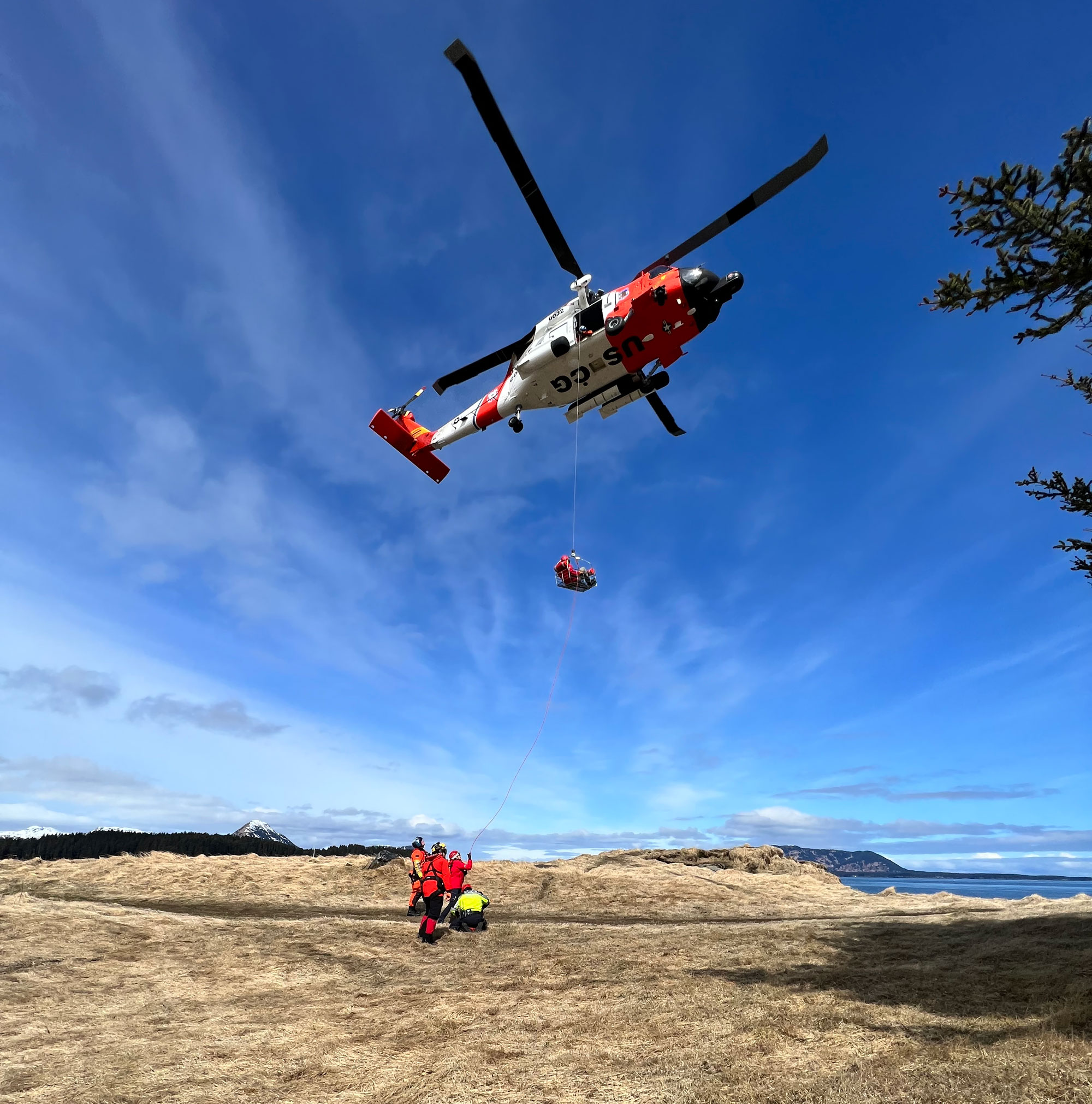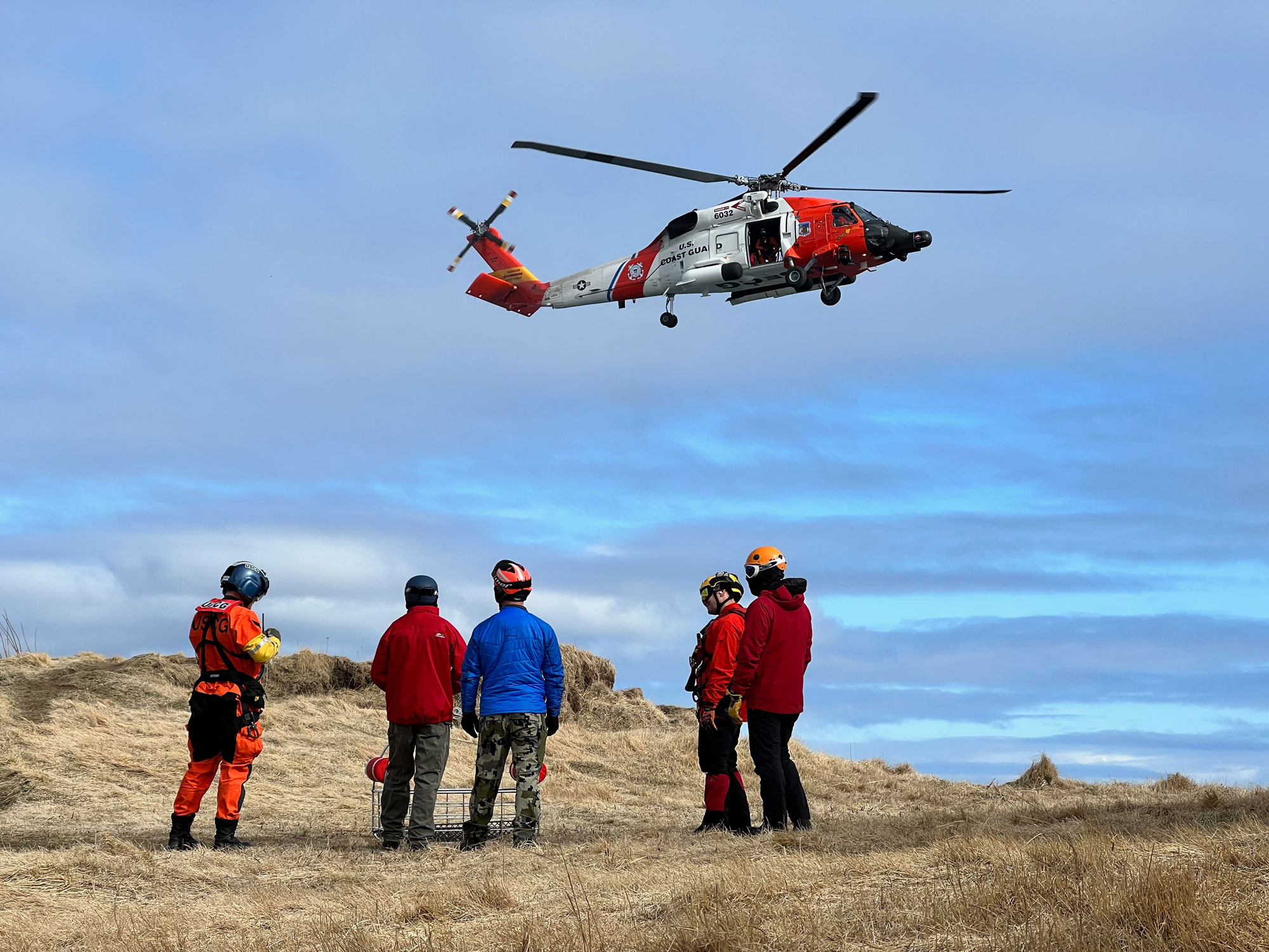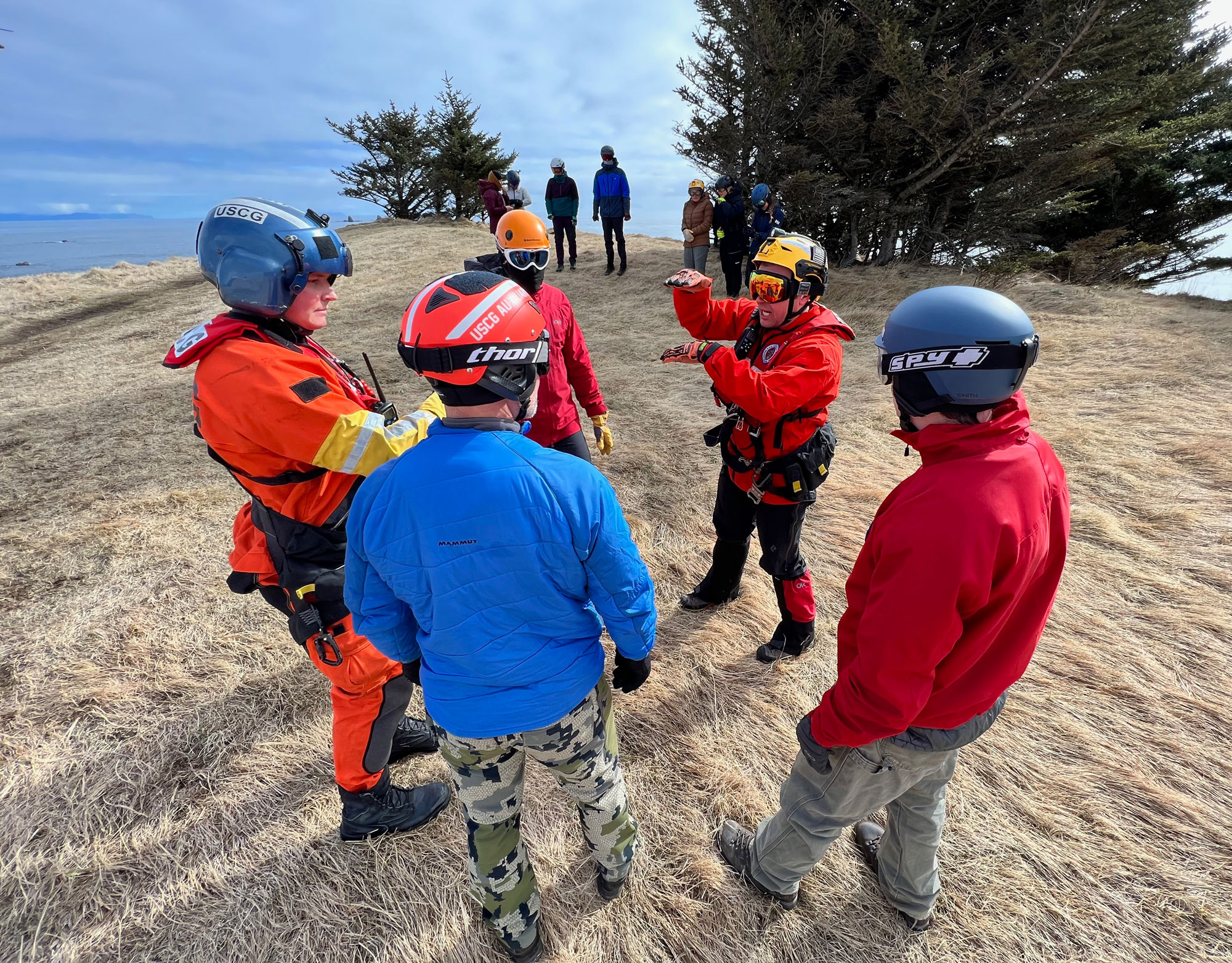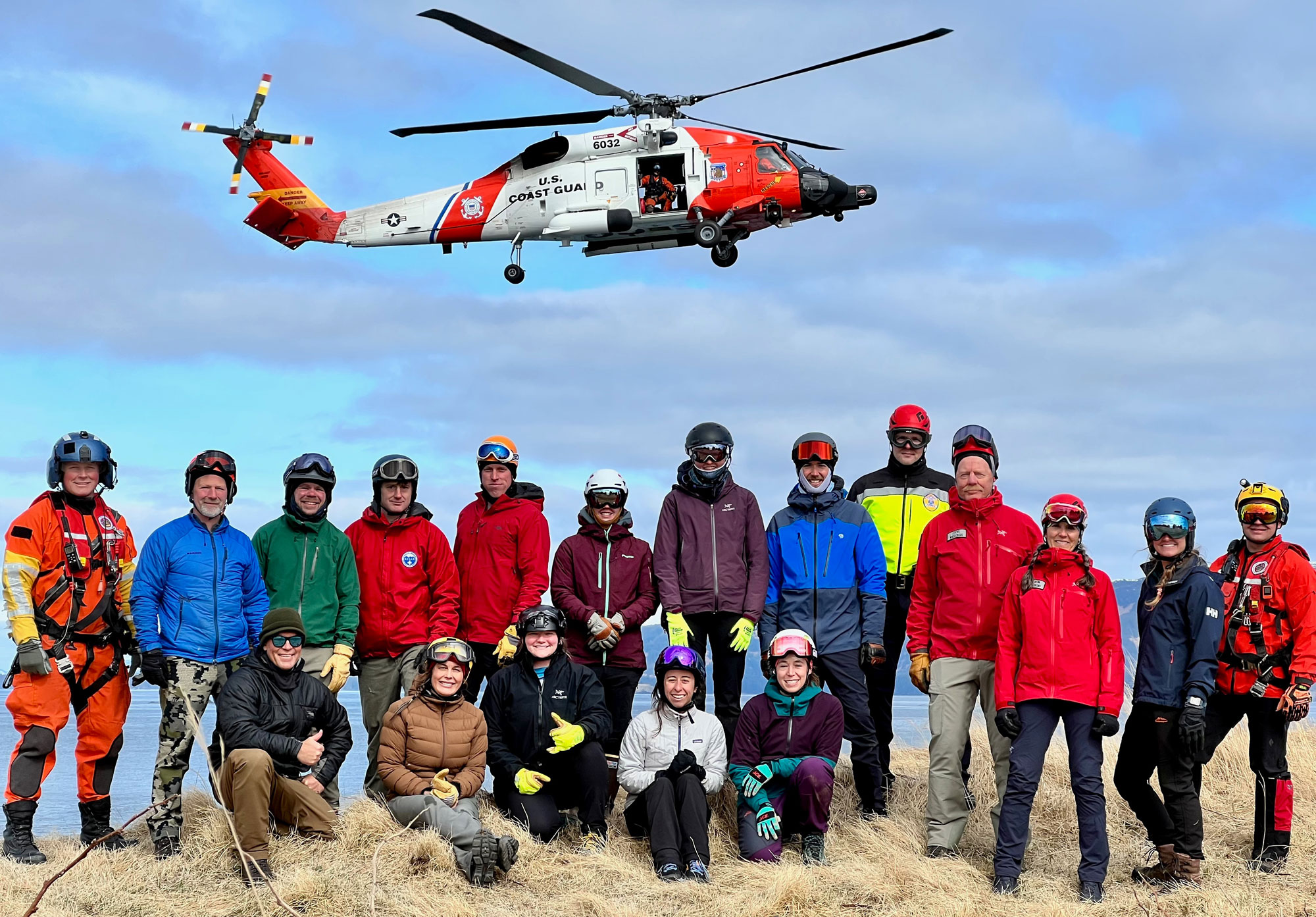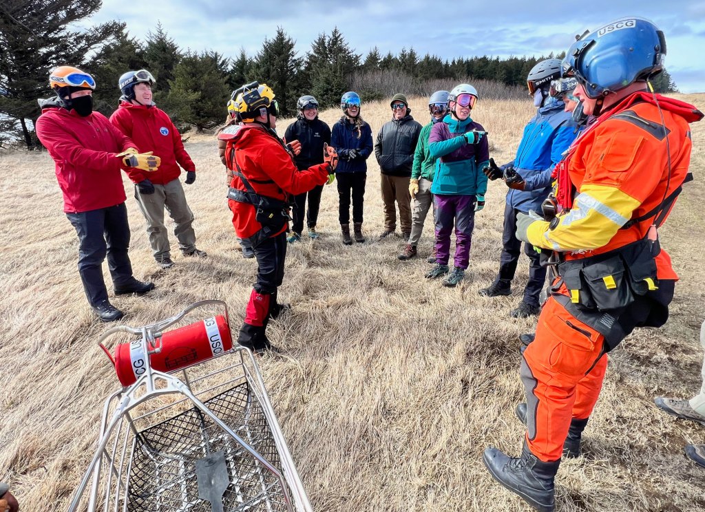 For KISAR’s April training we teamed up with the USCG Air Station to practice basket hoists, trail line tending, and helicopter ingress/egress. The air crew was very generous with their time and it was a fun training. Familiarizing KISAR members with working under a machine like an MH-60 Jayhawk is an important component of deployments and SAR missions when we coordinate with the USCG.