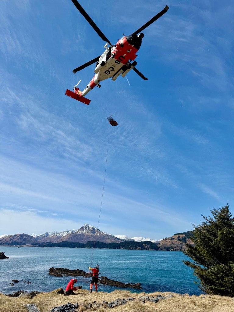 KISAR would like to thank the Kodiak Air Station for helping us make this training possible and increase the understanding of the capabilities of the two agencies. We would especially like to thank LT Catherine Cantu, H-60 pilot and KISAR ex officio board member, for helping plan and coordinate the event. The H-60 crew participating in the training were Pilot in Command LT Kyle Jackson, Copilot LCDR Ian Erickson, Flight Mechanic Johnny Vo, and Rescue Swimmer Gabe Davila. KISAR is incredibly grateful for their time and expertise in making the training successful.